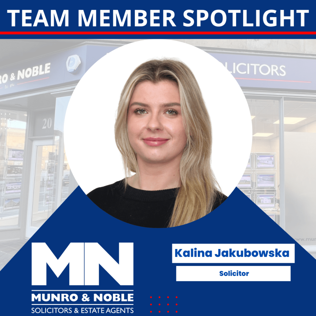 Kalina joined Munro & Noble in November 2023 as a Trainee Solicitor and has worked incredibly hard to reach this important milestone. Completing a legal traineeship requires dedication, resilience and a genuine commitment to client care and Kalina has demonstrated all of these qualities throughout her time with the firm.