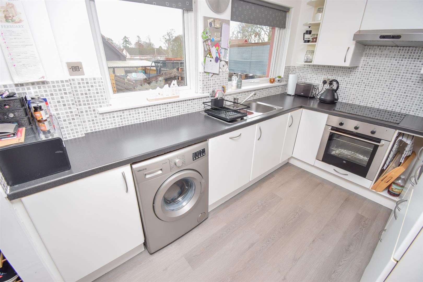 Situated in the popular Culloden area of the city, within easy walking distance of number of excellent amenities including primary and secondary schooling, this appealing three bedroomed semi-detached villa occupies a generous corner plot, and has been designed for comfortable family living, with its well proportioned rooms and fantastic storage facilities. Inside offers bright and appealing accommodation spread over two floors, and affords a number of great features including double glazed windows, gas central heating, a private driveway and low maintenance gardens. Upon entering the property, you are met with an entrance hall that opens onto the generous, double aspect principal bedroom, a bright and homely lounge with feature electric fire, and the kitchen/diner. Providing sufficient space for families meals, this open plan room has contemporary wall and base mounted units with worktops, complimentary splashback tiling, and a 1½ stainless steel sink with drainer and mixer taps. An electric hob with extractor fan over, electric oven and fridge-freezer complete the integral goods. From here, a door opens onto the rear garden. The ground floor is finished by the modern bathroom which features stylish wet-walling, a vanity wash hand basin, WC and a bath with mains shower over. Upstairs houses a small landing and two further bedrooms, both which have Velux windows. A great deal of storage is provided throughout this home by a cupboard in the hall, two in the landing, and two of the bedrooms having built-in wardrobes. The superb use of glazing throughout this home won’t go unnoticed by visitors, allowing a profusion of natural light to flood the rooms throughout the day and early viewing comes highly recommended.