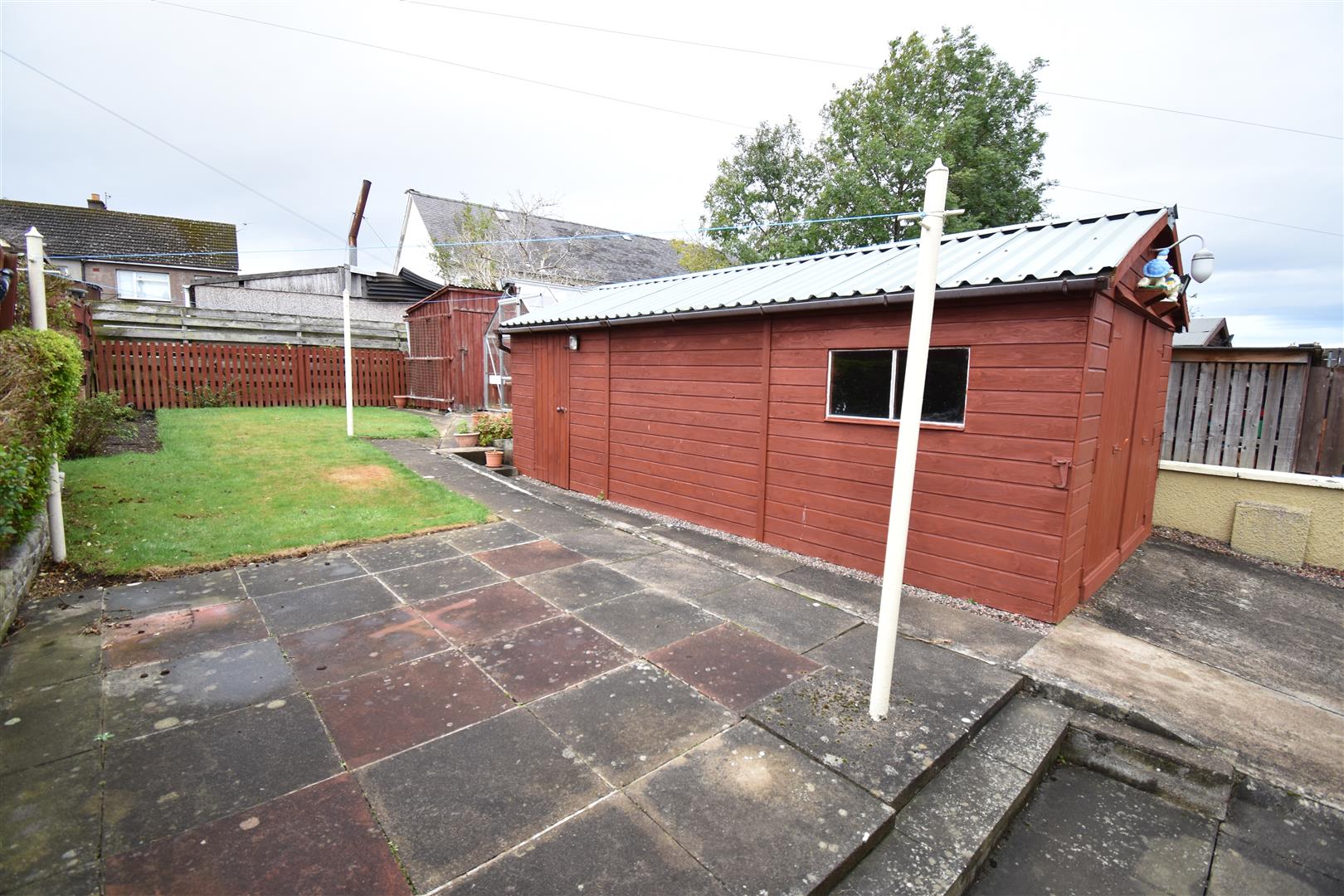 Externally, the front elevation is of low maintenance being laid gravel with a tarmac driveway that lies to the side elevation of the property and leads to the detached garage, which has workbenches, power, lighting, a pedestrian door and barn doors. The rear elevation is fully enclosed by timber fencing and is laid to lawn with a patio area. Sited here and included in the sale is the greenhouse and the wooden shed.