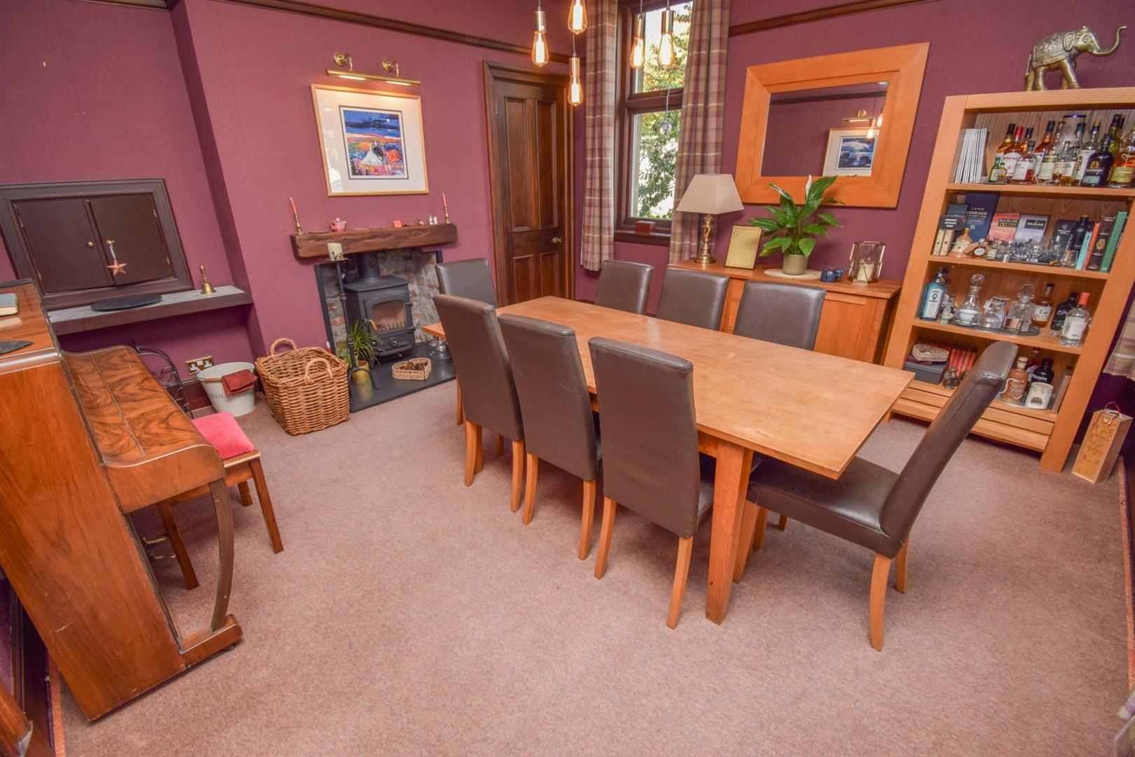Nestled in the prestigious Drummond district of Inverness, and occupying a substantial plot, 24 Drummond Road is an impressive, four/five bedroomed detached villa that offers an unparalleled blend of spaciousness and comfort that will appeal to families, whilst having the advantage a sweeping driveway, a glorious garden and a well placed sunroom. Dating back to circa 1930, the impressive accommodation is spread over two floors and retains a number of its original charming features including high ceilings, cornicing, deep skirtings, solid doors, and beautiful tiled flooring. It also boats a security alarm system, gas central heating, double glazed windows and ample storage facilities. As you step inside, you are greeted with an inviting entrance porch, off which is the charming lounge and formal dining room. These double aspect rooms allow natural light to flood the space throughout the day, as well as both having multi-fuel stoves on Caithness Slate, perfect for cosy evening indoors and setting the stage for memorable meals. Down the hallway, there is a double bedroom with fitted storage, a sitting room/games room, which could be utilised as a further bedroom, and a deluxe bathroom which comprises a wet-walled shower cubicle with double shower head, a WC, vanity wash hand basin, and a beautiful free-standing copper bath adds a little bit of luxury to an already stunning room. The rear elevation houses the kitchen, a fantastic walk-in pantry, a useful utility room which has space for a washing machine and the sunroom which overlooks the garden. Providing ample storage with a number of wall and base mounted units, the attractive Ashely Ann kitchen has oak worktops, an island breakfast bar, a Belfast sink with mixer tap and a Rangemaster stove with splashback tiling. There is an integral dishwasher, and space for a fridge-freezer. The first floor comprises three, bright and airy double bedrooms, two which are double aspect, a shower room, and a large storage room.
