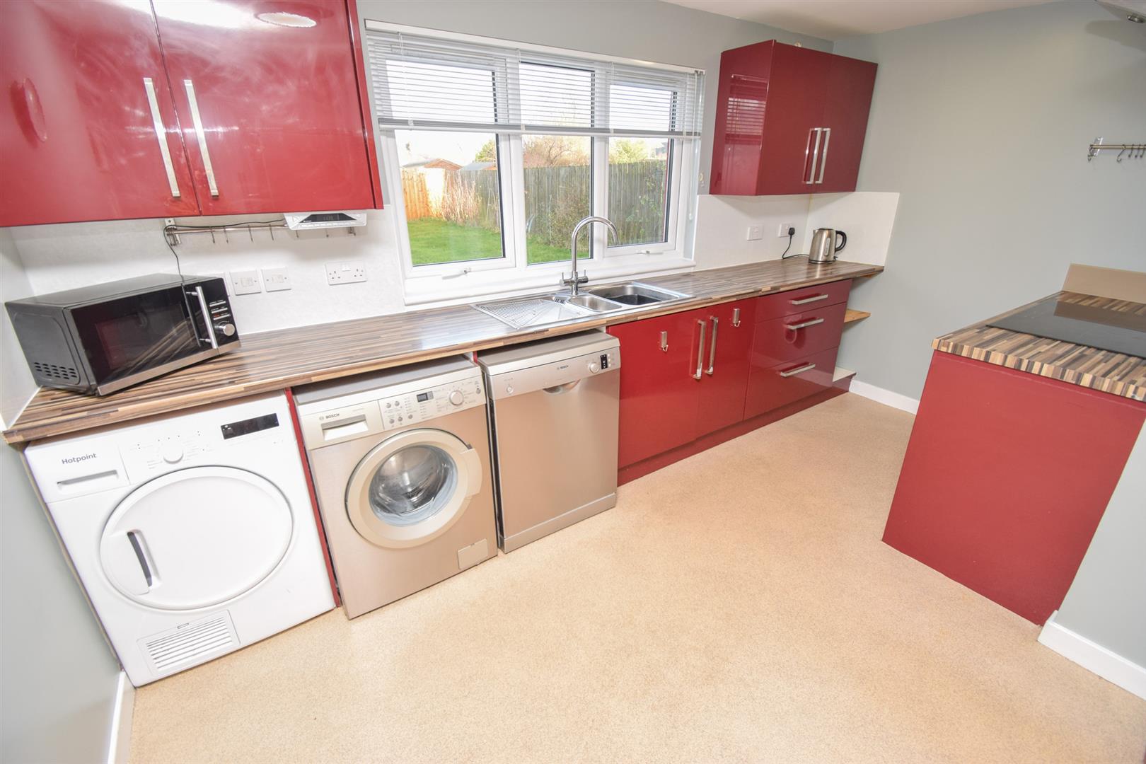 All carpets, fitted floor coverings, curtains and blinds. White goods and garden shed.