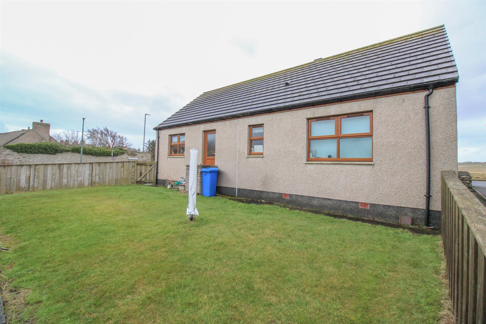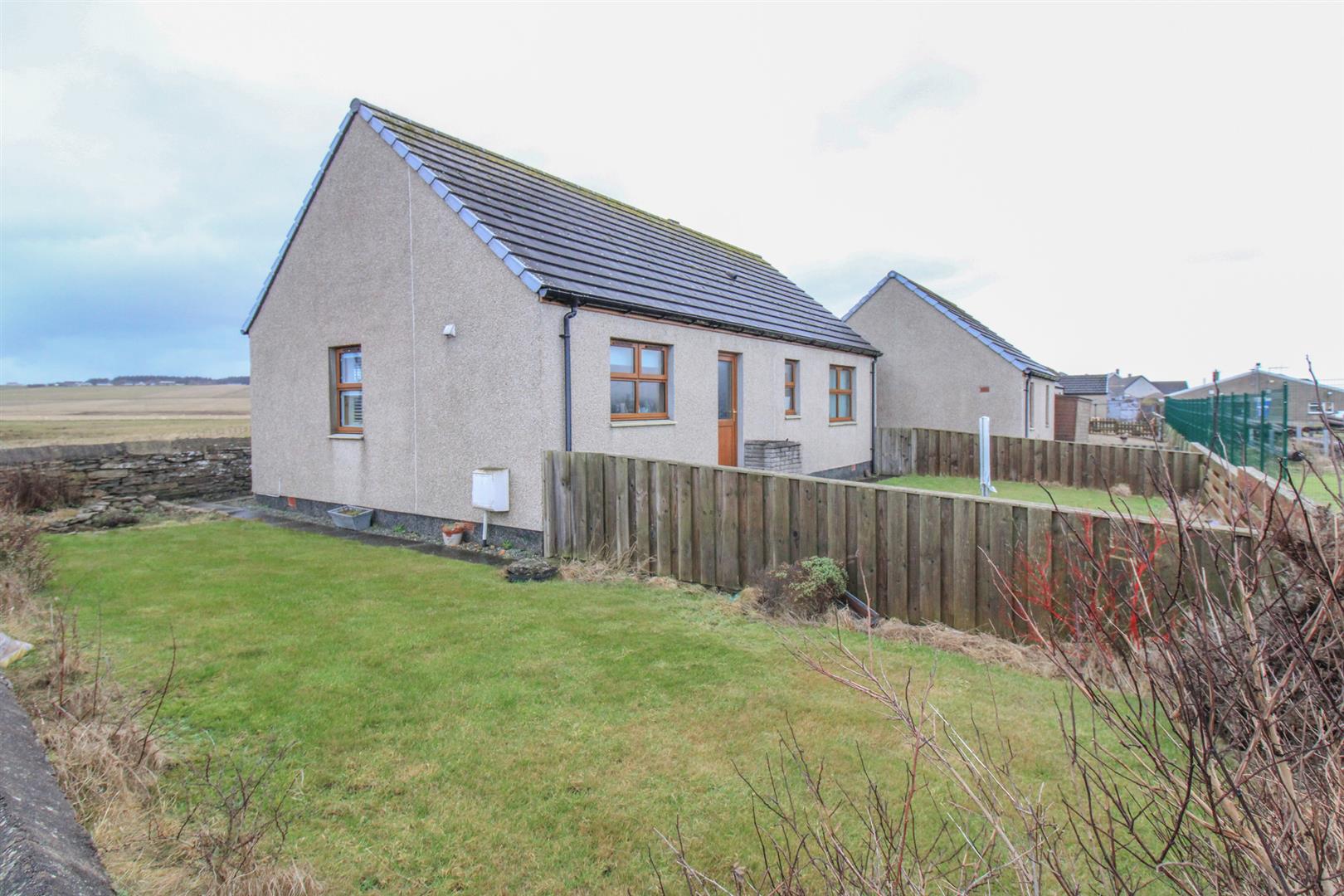 Located in the town of Wick, this fantastic two bedroomed bungalow with garden grounds and single garage sits on a corner plot and benefits from views over the surrounding countryside and beyond. In walk-in condition throughout and having electric heating and double glazed windows, this deceptively spacious home will appeal to first time buyers or those looking for a property with rental potential and early viewing is highly recommended to appreciate the size of the accommodation within. Inside consists of an entrance vestibule and hall (which has two storage cupboards and gives access to the loft), a dual aspect bright and airy lounge, a kitchen/diner, two double bedrooms, a box room/study and a shower room comprising a vanity wash hand basin, WC, and a double shower cubical with mains shower. The kitchen/diner is fitted with wall and base mounted units with worktops, and has splashback tiling, and a sink with mixer tap and drainer. The integrated goods include an electric oven, an electric hob with and extractor fan over. There is plumbing for a washing machine and included in the sale is the free standing fridge-freezer. From here, a door gives easy access to the rear garden.