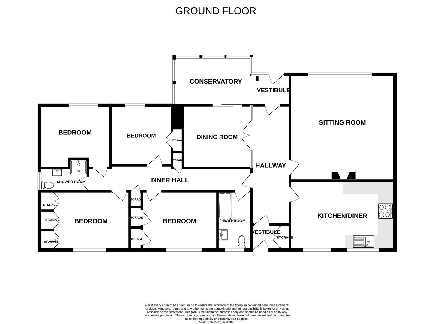 - Family sized, four bedroomed bungalow