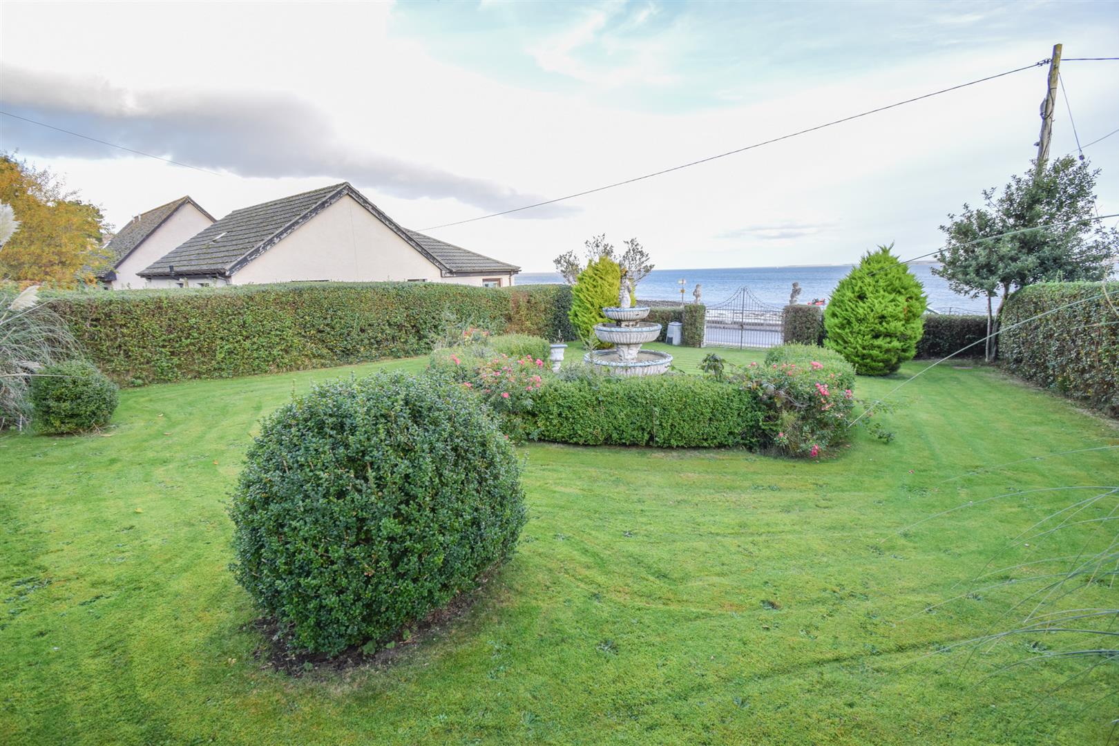 Outside, the gated property has a driveway that allows sufficient off-street parking for numerous vehicles and leads to the carport and garage which has power and lighting. Keen gardeners will enjoy the well maintained gardens grounds that surround the property, with the front being laid to lawn and enclosed by walling and hedging, offering privacy and creating a peaceful inviting atmosphere. The tiered, rear garden has a large terrace with an area of lawn, and his a fantastic space for entertaining and enjoying the summer sun and is complimented by a variety of mature trees, established shrubs and colourful flowers, perfectly framing the incredible views over the Moray Firth and beyond.