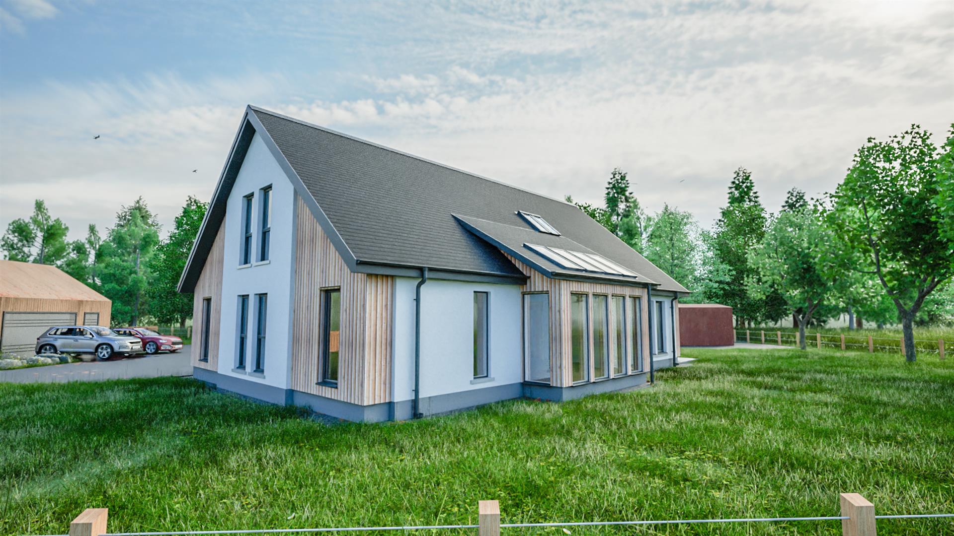 The new build, due to be completed by Summer 2026 is located within a prestigious development of just 12, individually designed houses that is situated in a semi-rural location on the edge of the peaceful village of Culbokie and would perfectly suit family living. The property will be finished to an exacting standard, having sought perfection through a number of detail-oriented additions and offers a wealth of features including a walk-in wardrobe and an en-suite shower room, underfloor heating and triple glazed windows. Inside, the well appointed accommodation has generous sized room and is spread over two floors, with the ground floor comprising a substantial open plan kitchen/diner which provides a fantastic entertaining space and lends itself to the modern family’s needs, a utility room, a formal lounge with large windows overlooking the garden grounds, an office/study, shower room, and the principal bedroom which offers a glorious walk-in wardrobe, and en-suite shower room. Upstairs there is a bright and airy landing, the family bathroom and a further three double bedrooms, all of which boast fantastic storage. Outside, the detached double garage offers sufficient parking and is finished carefully with electric roller doors. The garden grounds are laid to lawn, and development itself enjoys a secluded, woodland location and only by viewing can one appreciate the tranquil setting of semi-rural living, whilst still having the benefit of being within easy reach of Inverness and Dingwall. Within the site is an office/workshop which can be included or removed on completion.
