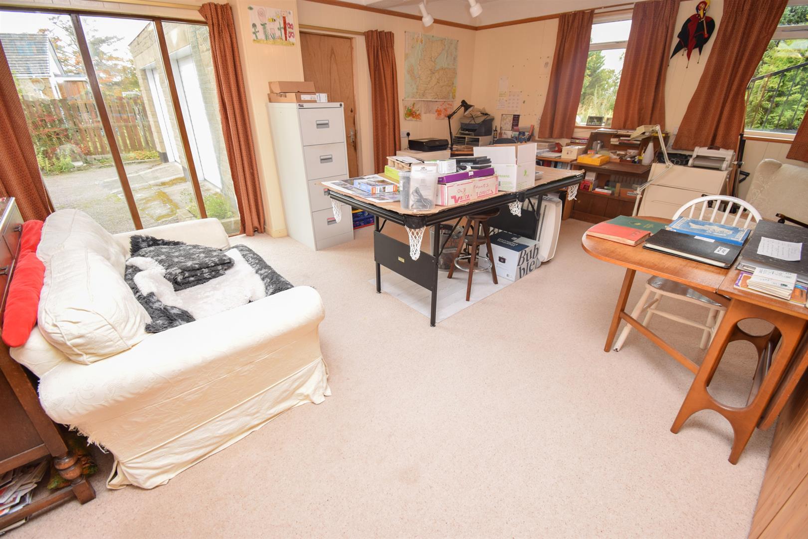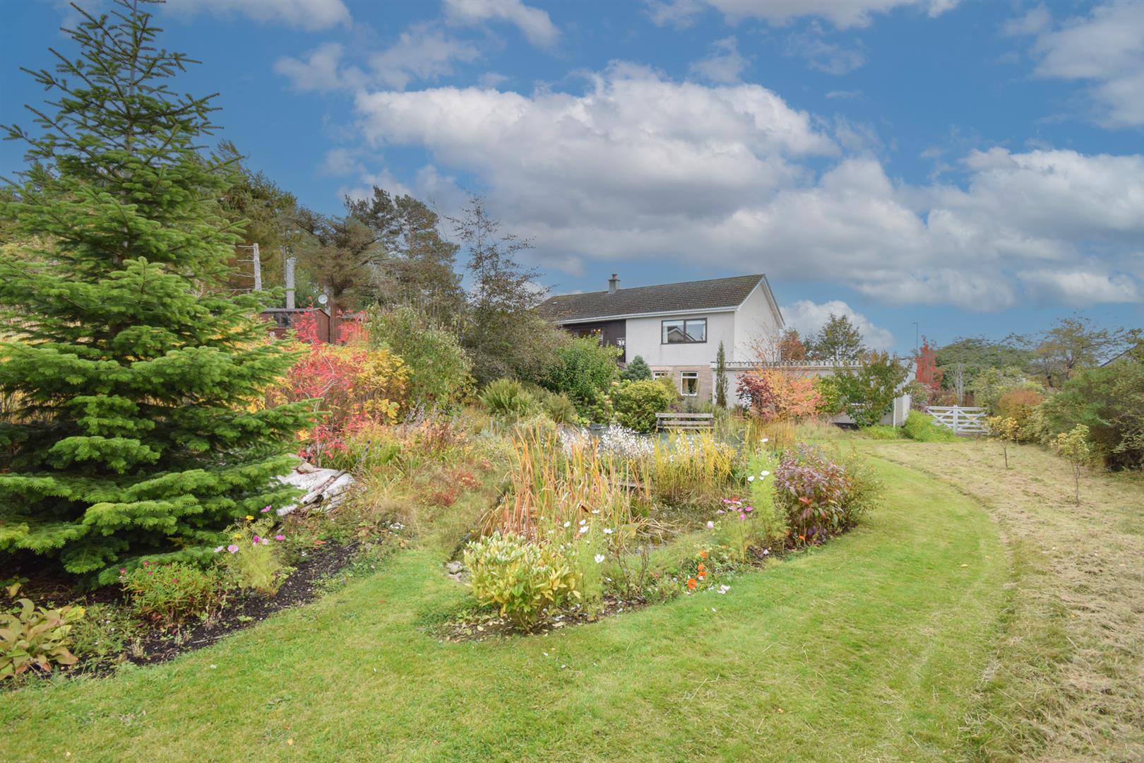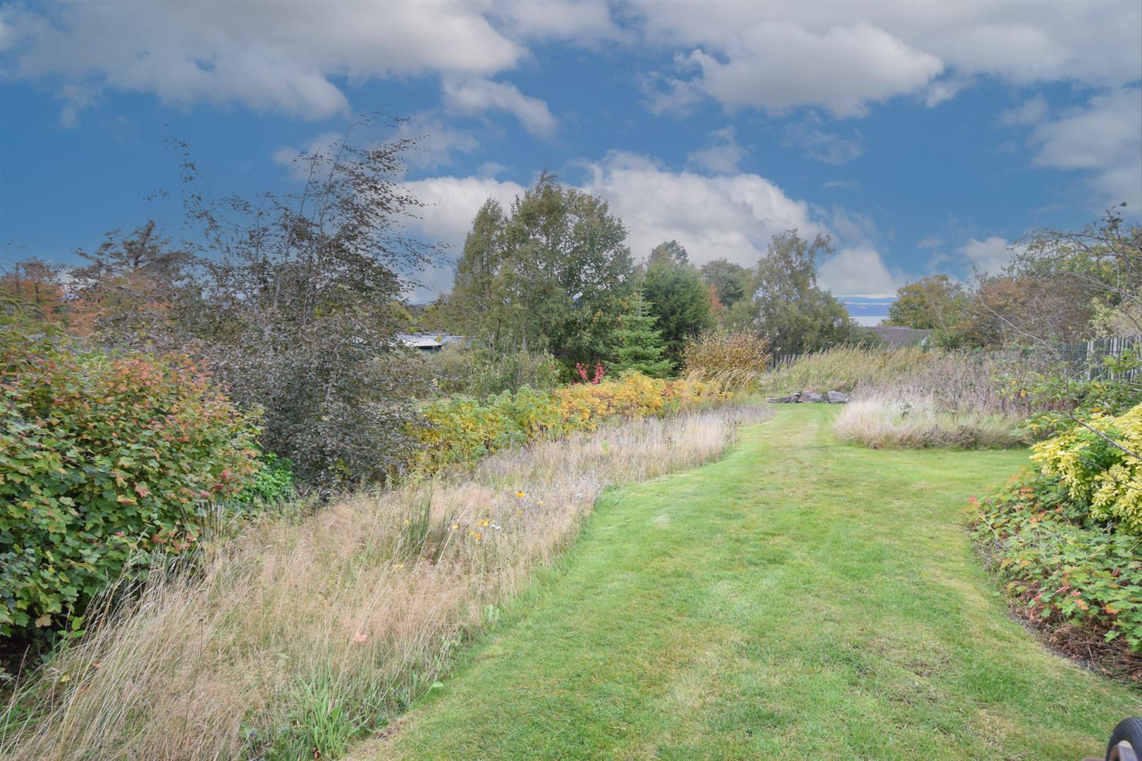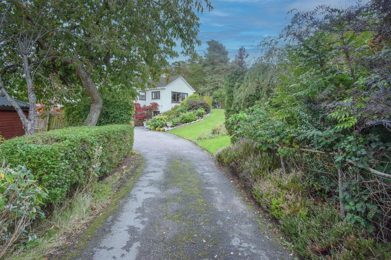 Occupying an enviable plot which extends to approximately ¾ of an acre, Dyunmaglash is a unique, three bedroomed detached villa with double garage which occupies a secluded position in the desirable Westhill area of the city. Affording views over the Moray Firth and glorious landscaped gardens, the property also benefits well from the clever use of glazing, which allows an abundance of natural light, generating a bright and airy environment throughout this family home. Upon entering the property, you are met with an entrance vestibule that opens into the generously sized games room/office. This versatile space could be used for a number of uses, and gives access to the garage, hallway (with WC and stairs to the first floor accommodation) and well placed sunroom. On the first floor can be found three double bedrooms, two of which boast fitted storage, while the principal bedroom has the advantage of a modern en-suite shower room. The family bathroom comprises a wash hand basin, WC, bathtub and is completed by a tiled shower cubicle. The substantial, double aspect lounge lies to the rear elevation making the most of the surrounding views and benefits from a multi-fuel stove and French doors which open onto a lovely patio area, making this a perfect space to enjoy al-fresco dining. The well-appointed kitchen has a number of wall and base mounted units with worktops, a 1½ sink with mixer tap and drainer and has space for a dishwasher, fridge and cooker. From here, an archway opens into the dining area, which is bright and airy and provides a welcoming space for entertaining. Off this area is the useful utility room which has space for a washing machine and tumble dryer, and has a door to the rear garden. Further pleasing features of this home include ample storage, gas central heating, double glazed windows and four solar panels which are connected to the water supply.