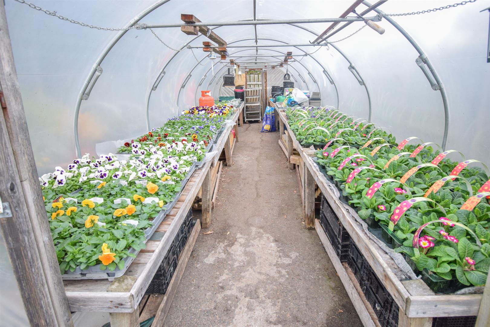 All carpets, fitted floor coverings, curtains and blinds. Two shed, three polytunnels, and rabbit hutch.