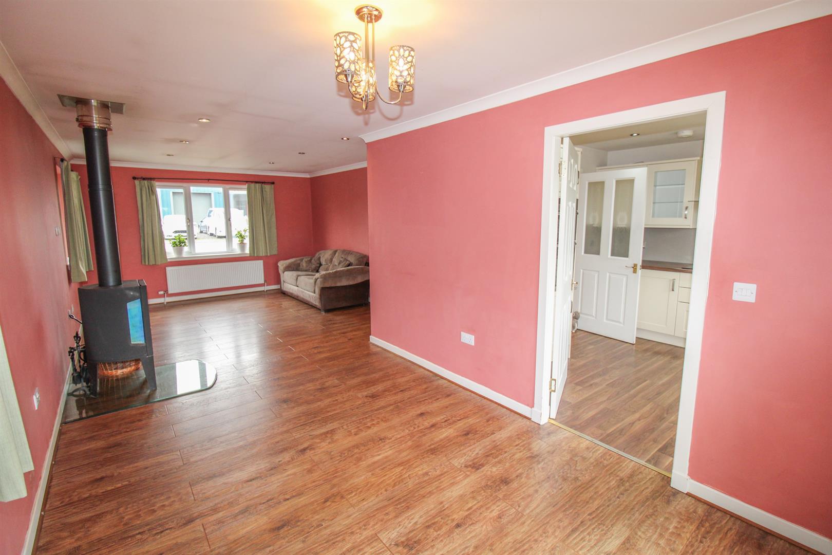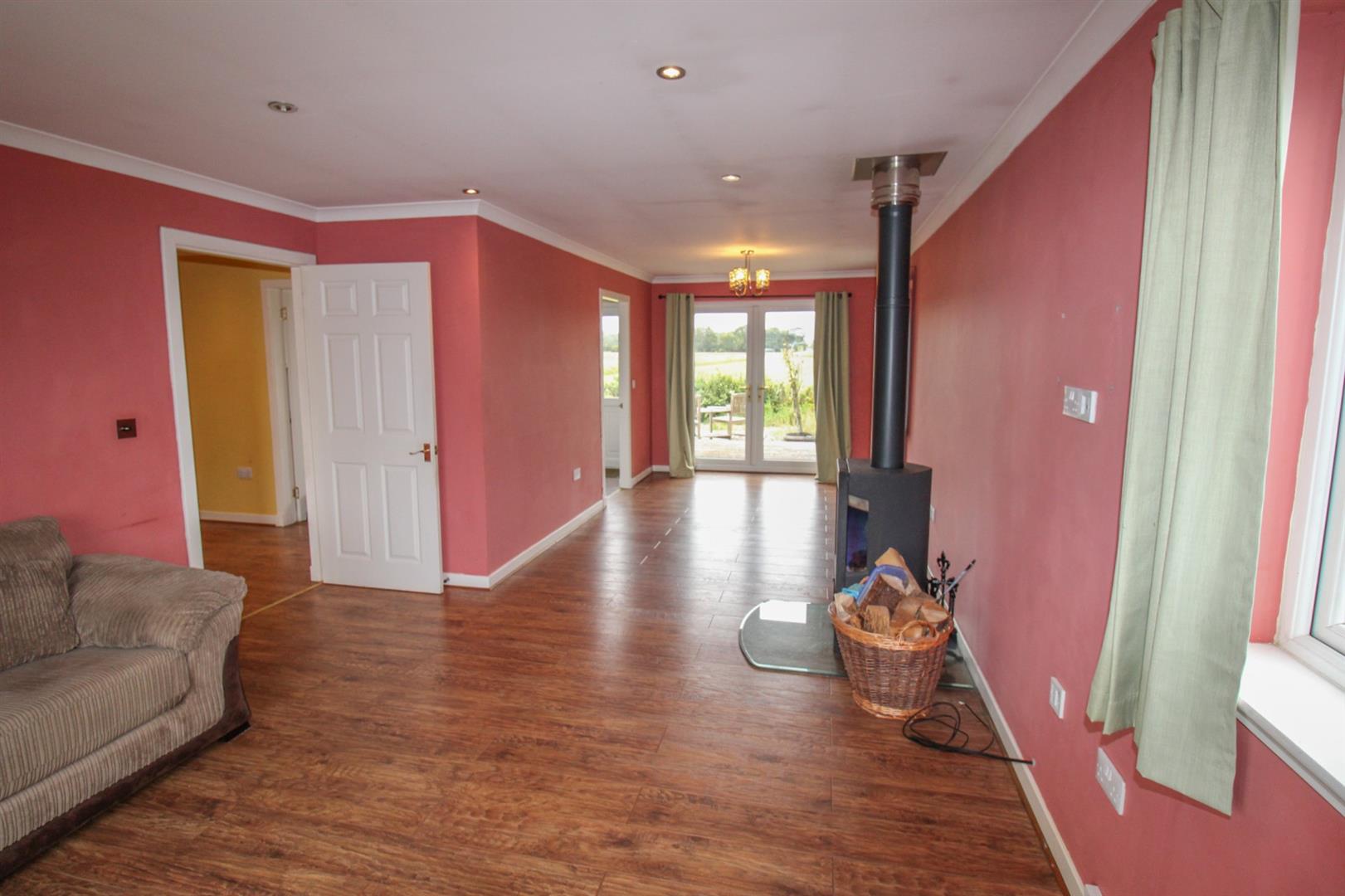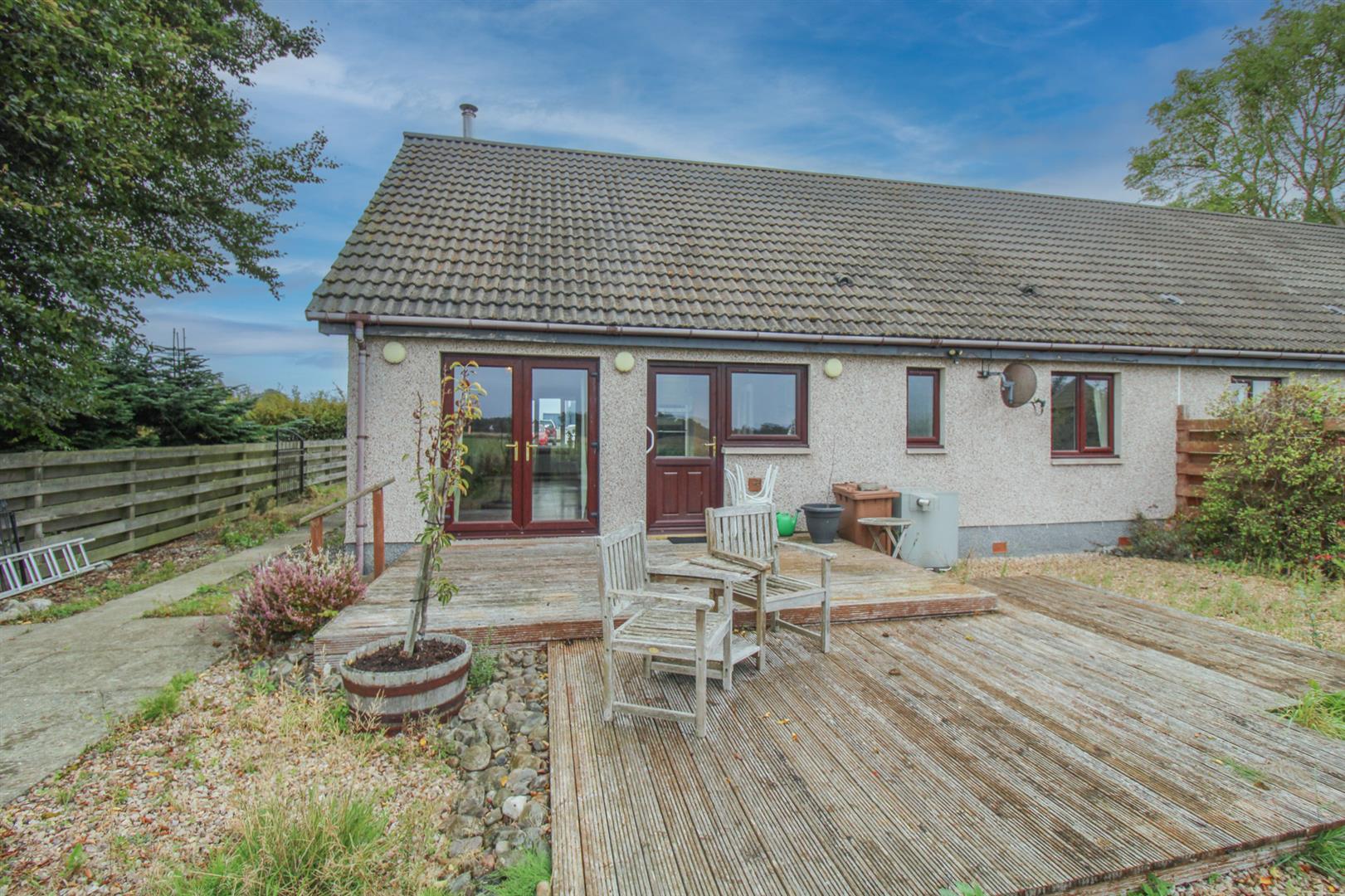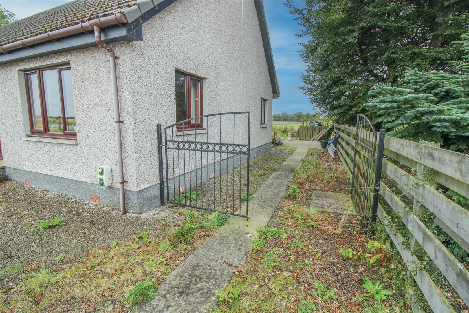 This semi-detached three bedroomed bungalow, offers well-proportioned accommodation throughout. This property is in a quiet location in the small village of Arabella. Offering a wealth of features including three double bedrooms with the principal having an en-suite shower room, ample storage provisions, double glazing and oil fired central heating. Viewing is highly recommended to appreciate the accommodation on offer. On entering the property through the entrance vestibule and into the L shaped hallway, with wood effect laminate flooring throughout, takes you into a generous lounge/dining room. Boasting French doors that lead to the rear decking area, ideally placed for al-fresco dining, and windows to the front and side elevation. The lounge has a wood burning stove set as the focal point of the room. Completing the accommodation is the kitchen which is fitted with shaker style wall and base mounted units with laminate worktops, splashbacks, and a stainless-steel 1 ½ sink with mixer tap and drainer. Integrated appliances include an under-counter fridge/freezer, a dishwasher, a double electric oven and hob with extractor hood over. From here, a door provides access to the rear garden. Leading on is the principal bedroom which benefits from a fitted wardrobe, and en-suite shower room with WC, pedestal wash hand basin and a corner shower. Completing the accommodation is the two double bedrooms, and the family bathroom which comprises a bathtub with a thermostatic shower over, a WC, a pedestal wash hand basin, a heated towel rail, and ceramic floor tiles.